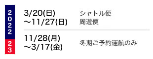 ◆シャトル便は2023.3.18より再開を予定しています。